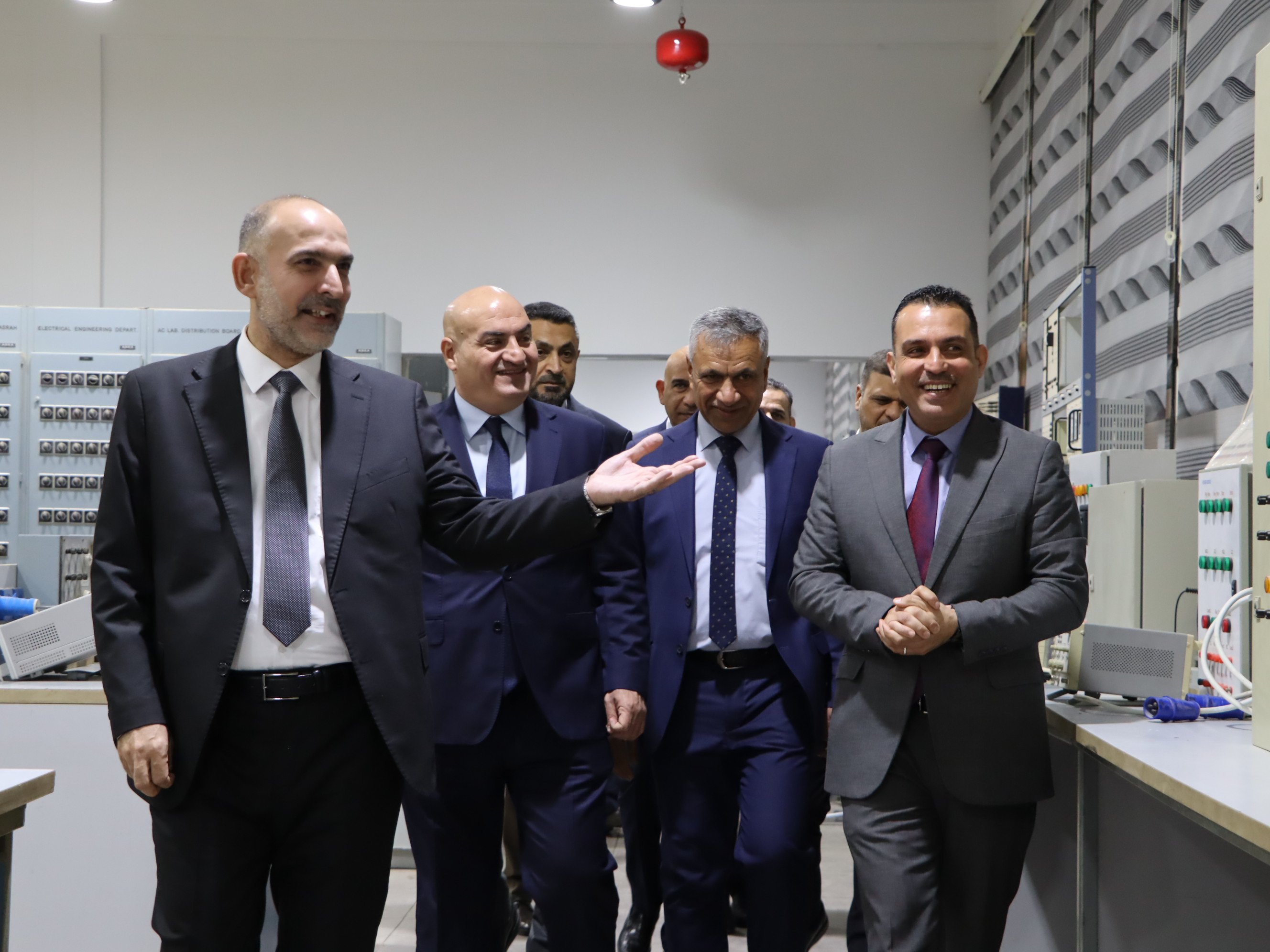 The Deputy Minister was received by the Assistant President of the University of Basra for Scientific Affairs, Assistant Professor Dr. Haider Khazal Mahbas, the President of the Southern Technical University, Professor Dr. Adnan Abdullah Atiq, the Dean of the College of Engineering, Professor Dr. Mufeed Turki Rashid, and the Vice Deans and Heads of Academic Departments.
