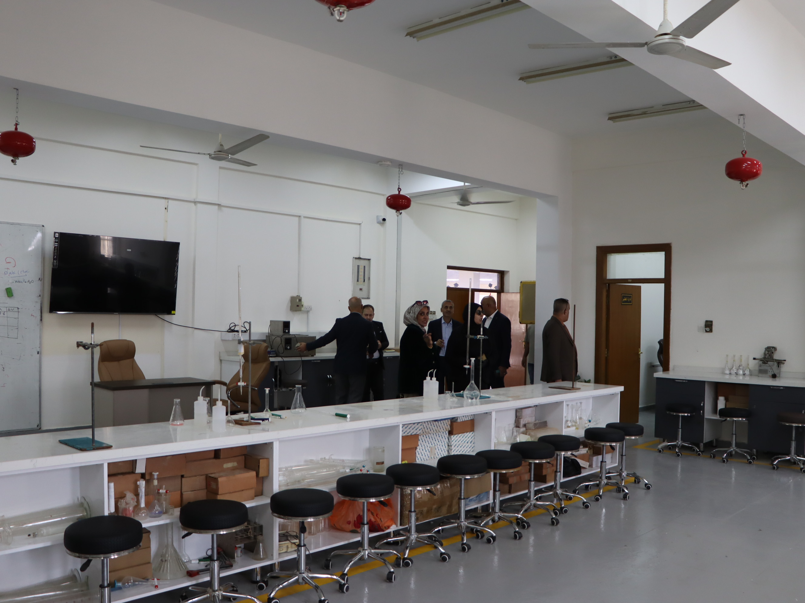 The delegation was received by the Dean of the College of Engineering, and accompanied on its tour by the Assistant Dean for Administrative Affairs, Professor Dr. Sarmad Abdullah Abbas. The delegation inspected several of the college's laboratories, reviewing their technical and scientific capabilities, in addition to observing the workflow in the administrative departments.