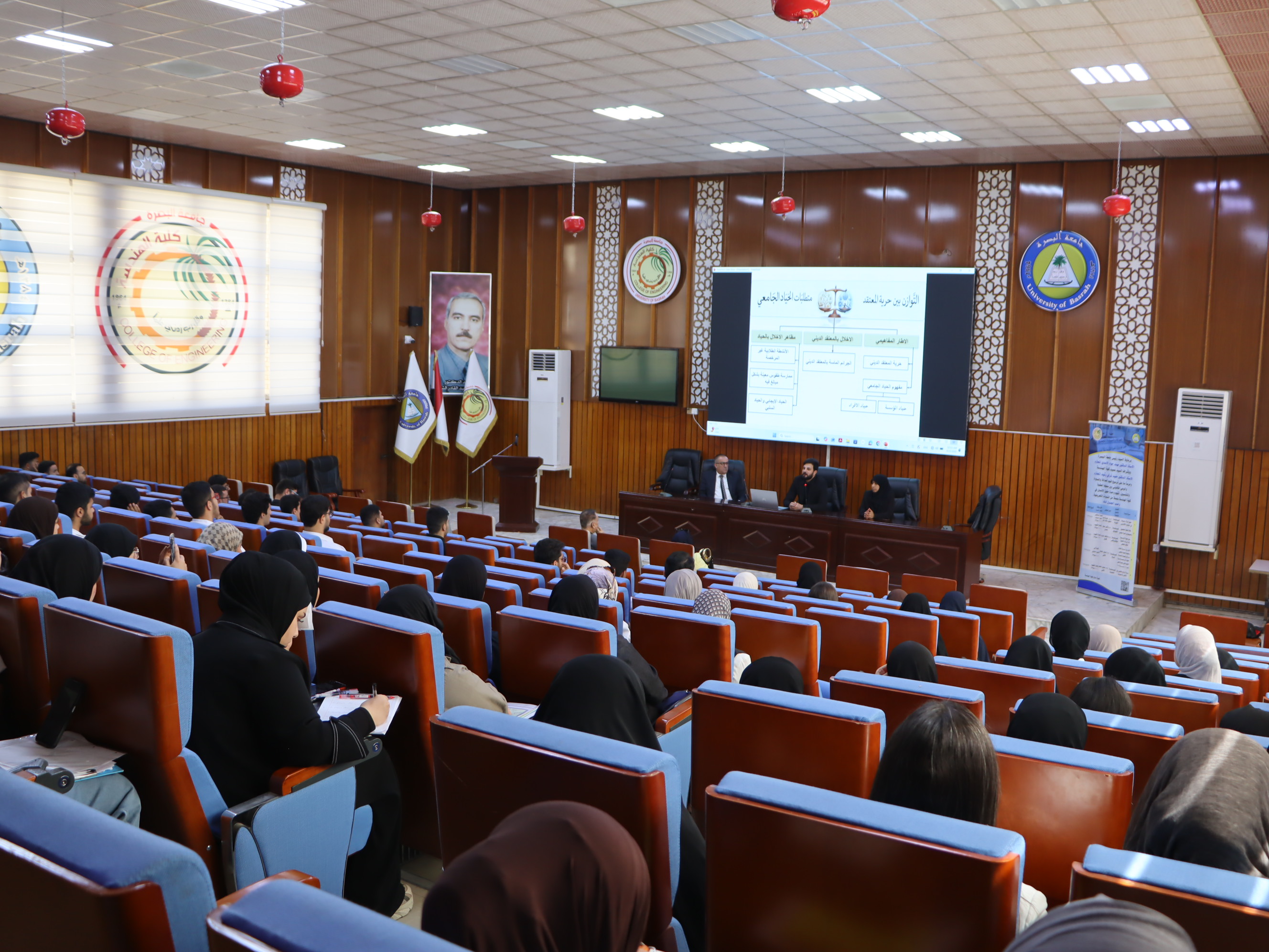 The lecture, entitled “Balancing Freedom of Belief and the Requirements of University Neutrality,” was delivered by Lecturer Hussein Jassim Shatati. He addressed the legal and humanitarian frameworks for freedom of belief and the mechanisms for achieving a balance between this freedom and the necessity of maintaining a neutral university environment that respects diversity and ensures academic harmony.