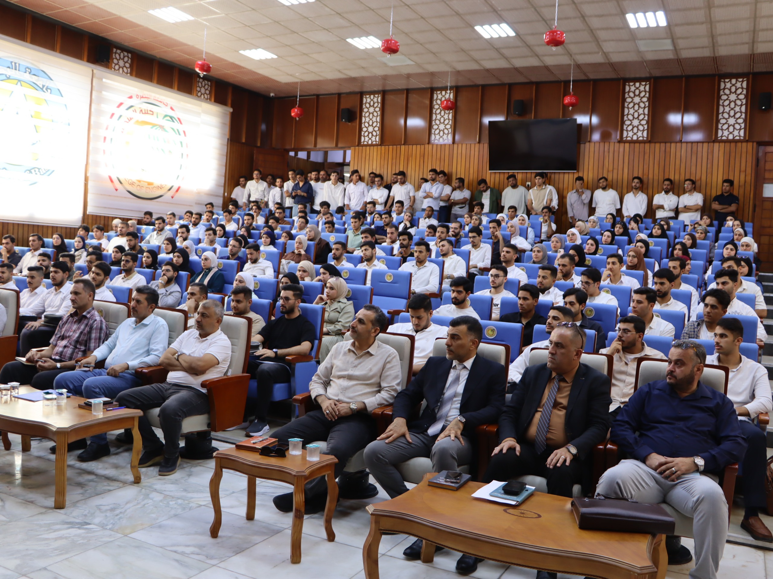 The symposium was attended by department heads and a large number of students. The lecturer discussed the importance of digital transformation in developing academic and administrative performance within Iraqi universities and its role in keeping pace with global developments in higher education.