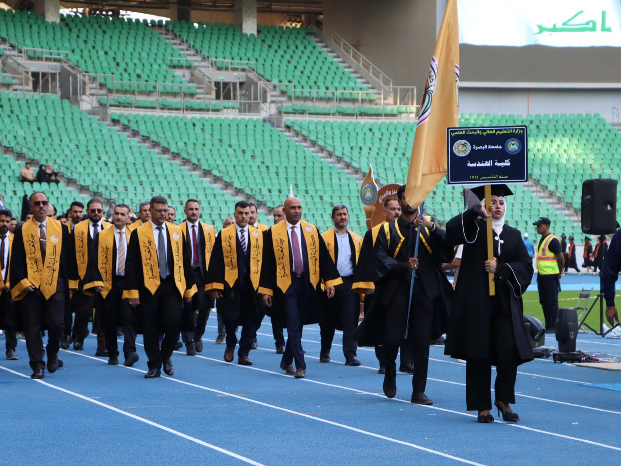 The College of Engineering at the University of Basra participated in the graduation ceremony for the University of Basra students for the (58) class, which carried the slogan "Excellence and Creativity Course." The ceremony was held at the Palm Trunk Stadium in Basra Sports City amidst a solemn festive atmosphere.
