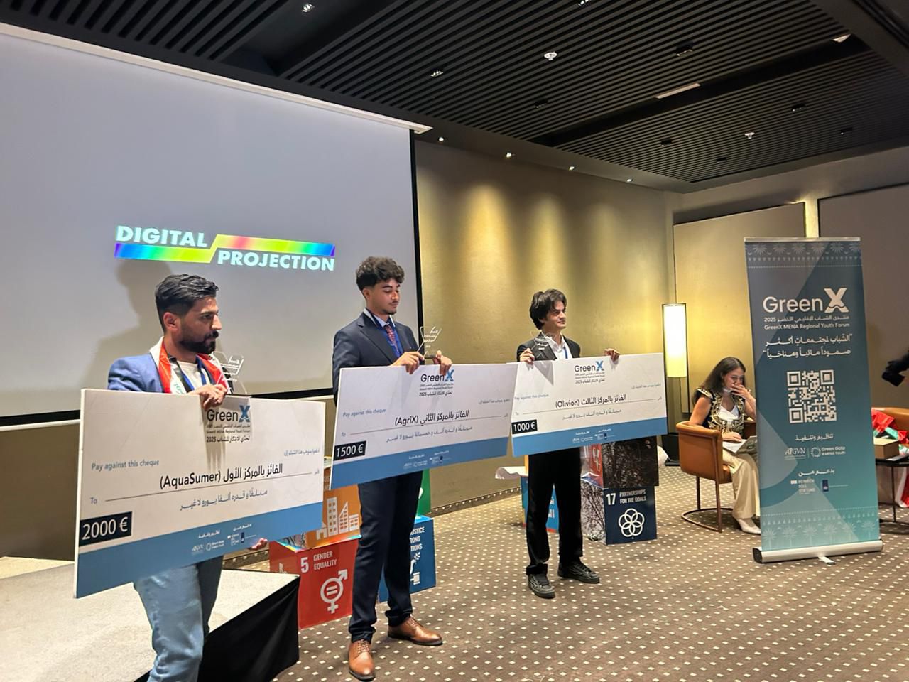 The AquaSumer team from the Electrical Engineering Department at the College of Engineering, University of Basrah, won first place in the Middle East and North Africa in the Green Innovation and Sustainability Program (GreenX MENA) for their innovative project addressing one of the most prominent agricultural challenges in Iraq and the region. The AquaSumer project aims to develop a smart system for treating and improving the quality of agricultural irrigation water using Internet of Things (IoT) technologies and sensors to measure water quality indicators such as salinity (TDS), turbidity, and pH. The system then analyzes these indicators and selects the optimal treatment method through an integrated electronic control system. This contributes to supporting the agricultural sector in areas suffering from high salinity and water pollution, leading to soil protection, increased crop productivity, and reduced operating costs for farmers. This achievement comes as part of the College of Engineering's efforts to utilize engineering disciplines, artificial intelligence, and modern control technologies to create practical and sustainable solutions that serve Iraqi society and support the transition towards smart agriculture and environmental sustainability. The project also reflects the high level of scientific and technical awareness among the college's students and their ability to provide innovative solutions applicable to local and regional markets. The team included engineers Mahmoud Jassim Jawad, Ali Nadhim Waheed, and Hashim Murtadha Taher, under the supervision of Professor Dr. Ammar Abdulshaheed Abdulhameed, a faculty member in the Electrical Engineering Department. It is also worth noting that this event was organized by the Arab Youth Green Voices Network (AYGVN) and Green Gate 4 MENA Youth, with support from the Heinrich Böll Foundation – from Tunisia and the Kingdom of the Netherlands – and featured more than 250 projects from over 20 Arab, Asian, and African countries. On this occasion, the Department of Electrical Engineering extends its sincerest congratulations to its dear graduates on this outstanding achievement, wishing them further success and brilliance in their scientific and research career, which will enhance the position of the University of Basra and its leadership in the fields of innovation, technology and environmental sustainability.