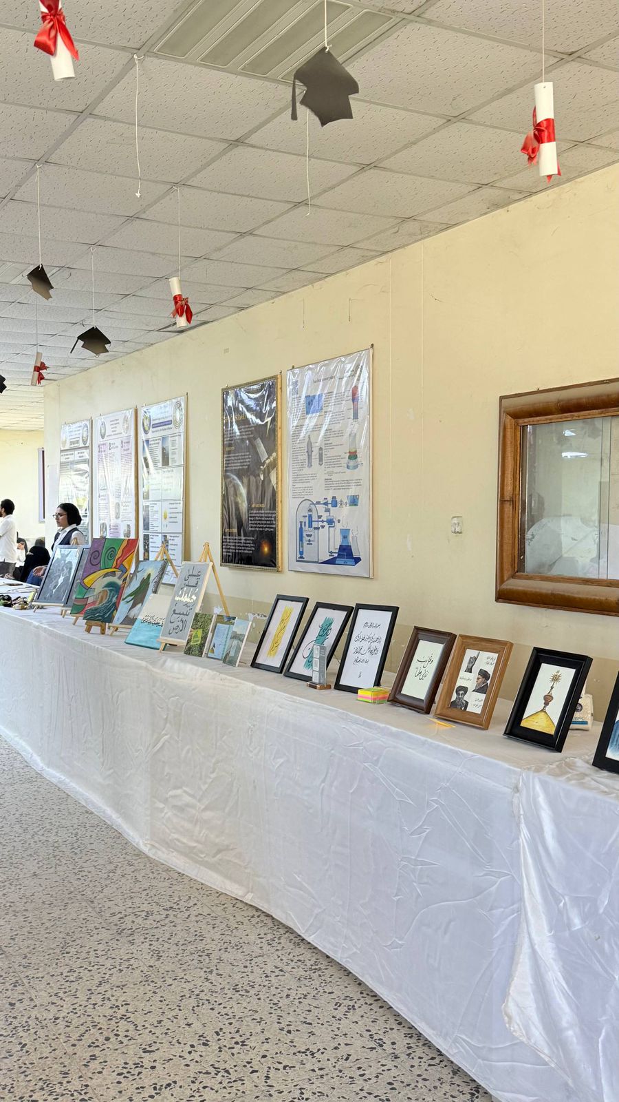 The exhibition took place in the halls of the Chemical Engineering Department, featuring the work of a select group of talented students and visual artists in the fields of painting, Arabic calligraphy, and various other art forms. The exhibition was attended by a number of professors and students who praised the quality of the exhibited works and the creative ideas and visions they conveyed, reflecting the students' talents and passion for art.