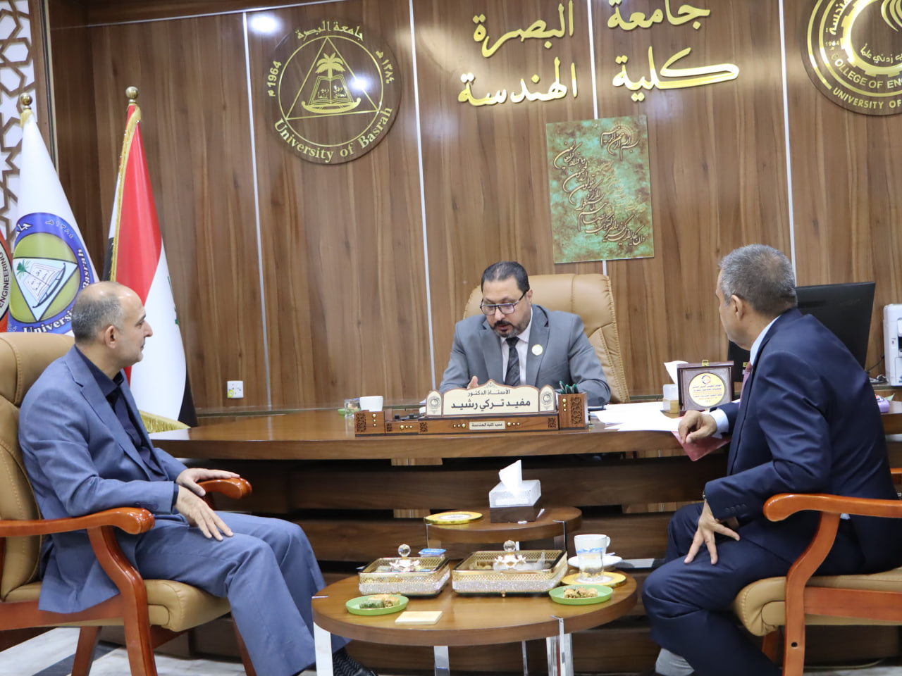 The Dean of the College of Engineering, Professor Dr. Mufeed Turki Rashid, received the President of the University of Basra, Professor Dr. Muhannad Jawad Kadhim, during his inspection visit to the College of Engineering.