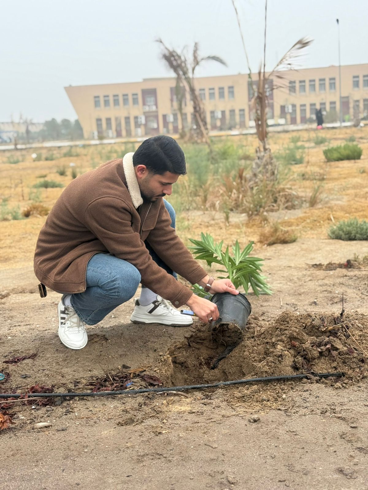 As part of their volunteer work and environmental awareness initiatives, third-year students in the Petroleum and Gas Engineering Department at the College of Engineering, University of Basra, launched a tree-planting campaign in the college gardens. The aim was to contribute to increasing green spaces and improving the university environment.