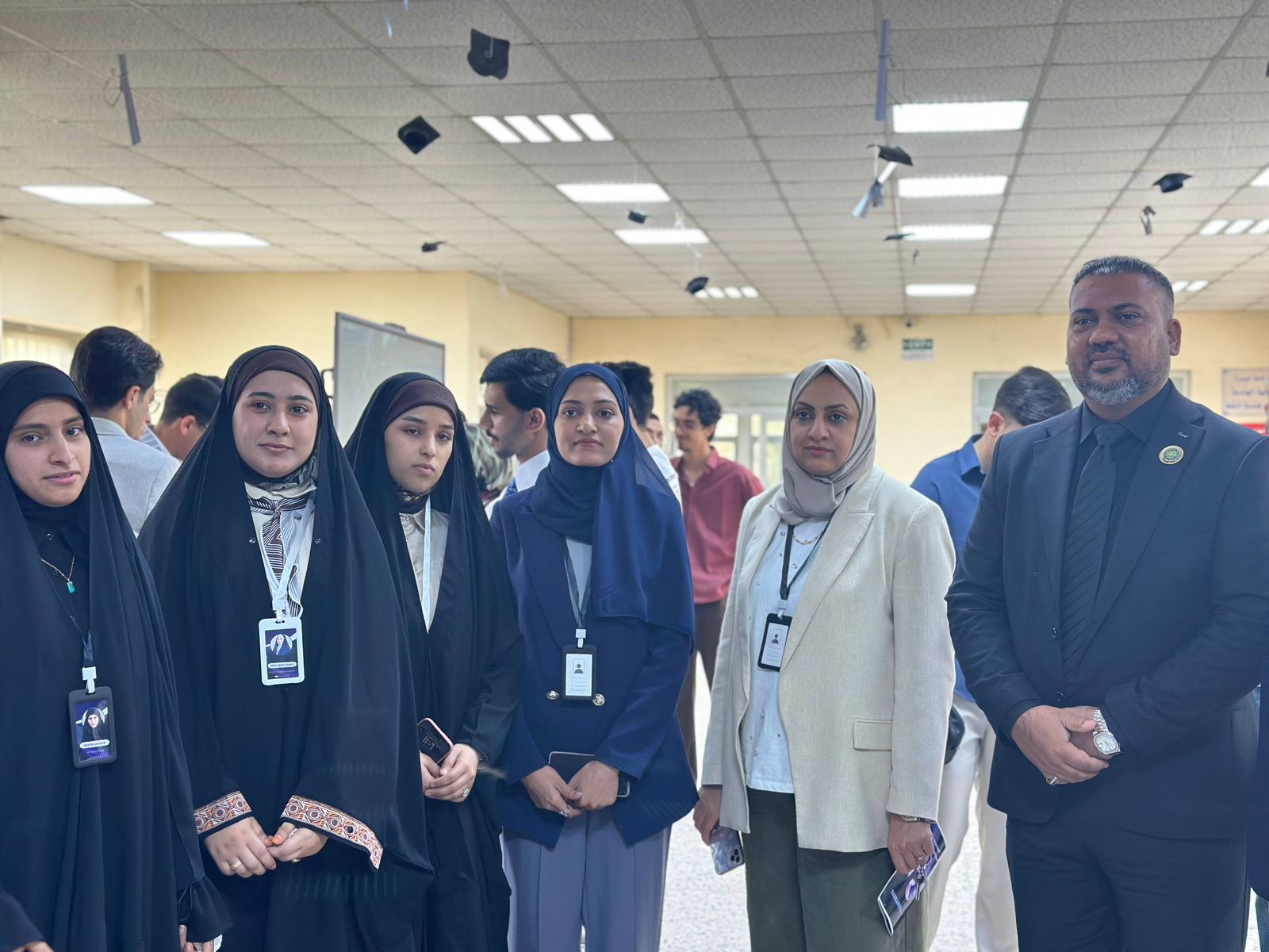 The exhibition was honored by the presence of the Assistant President of the University of Basra, Professor Dr. Ayman Saleh Naama, who expressed his admiration for the advanced technical level and software solutions presented by the students at this early stage of their studies.